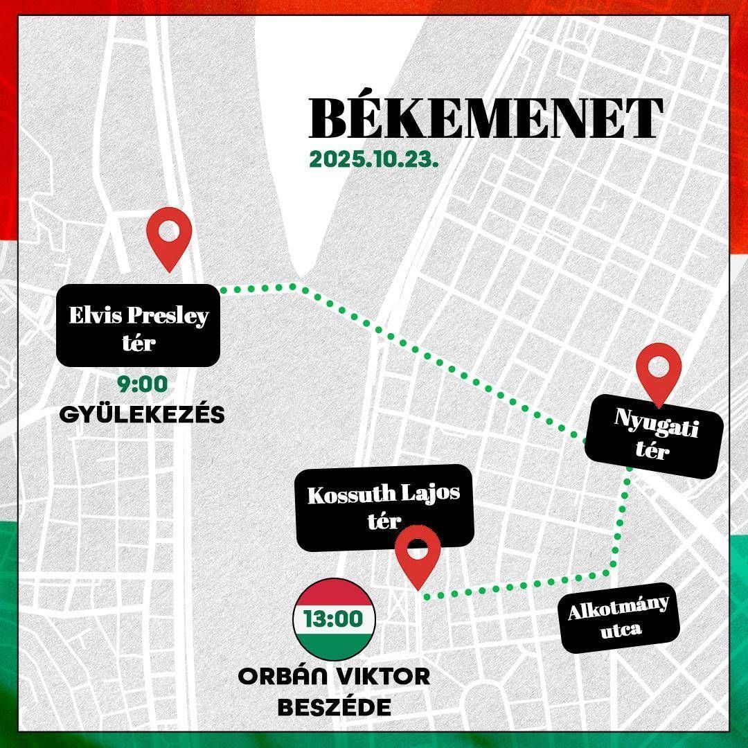Sorsdöntő békemenet lesz október 23-án, ami ismét megerősítheti a kormány politikájának a helyességét. A békemenet gyülekezője 9 órától lesz a budapesti Elvis Presley téren, ahonnan a menet 11 órakor indul, hogy a Margit hídon, a Nyugati téren és az Alkotmány utcán keresztül megérkezzenek a Kossuth térre.