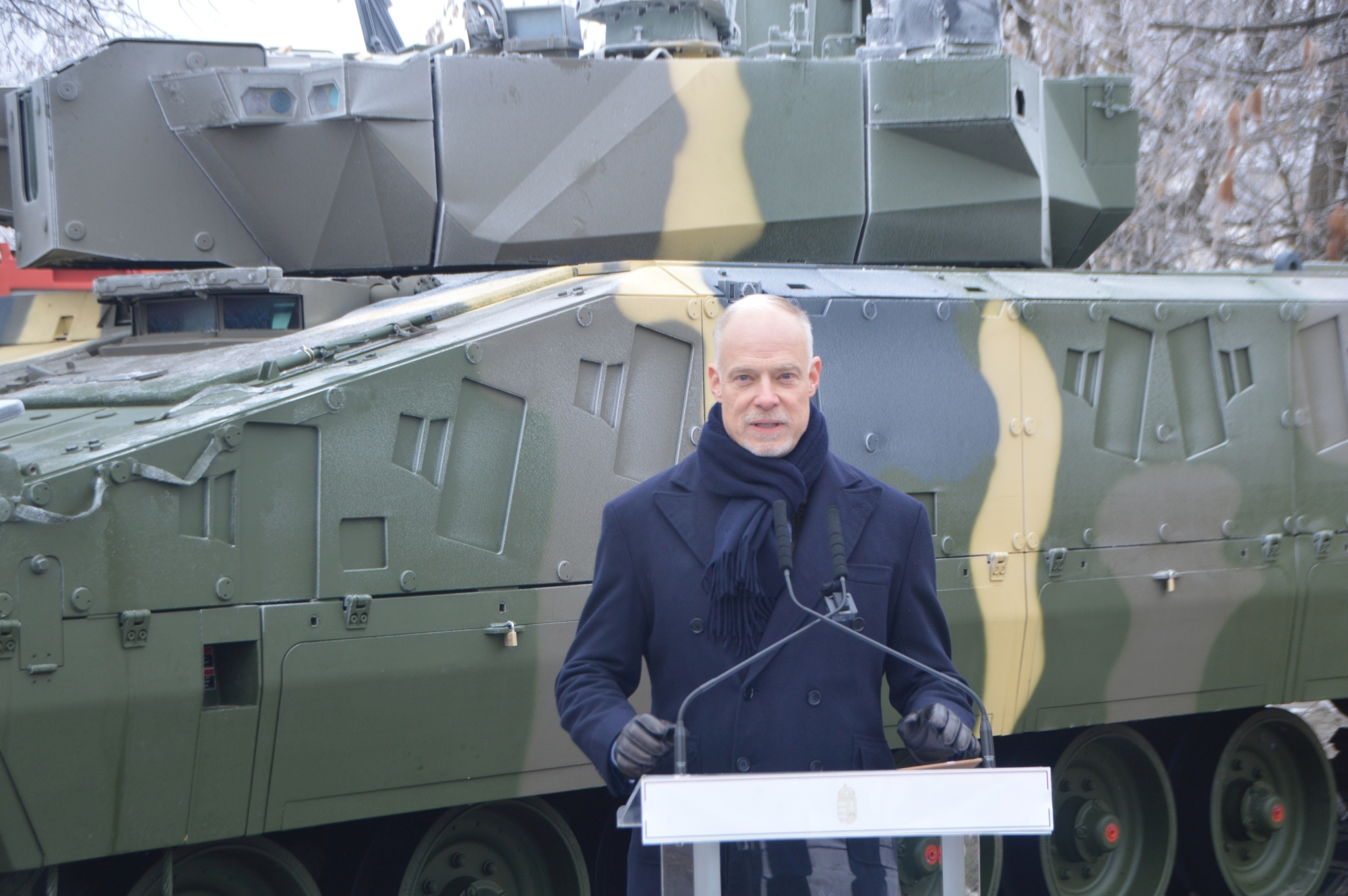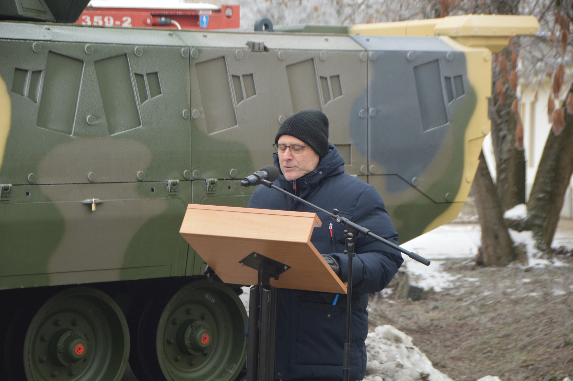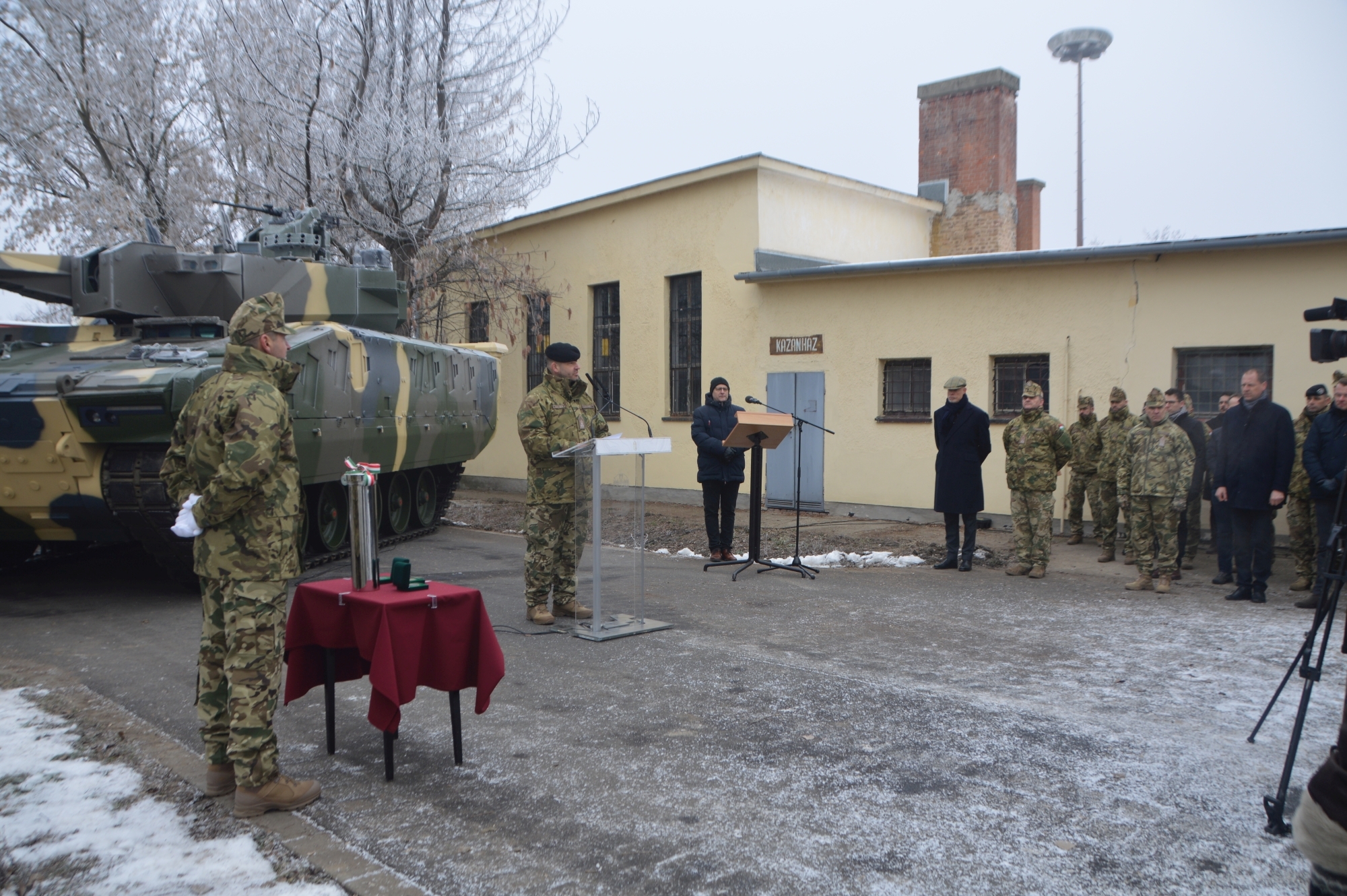 A keddi ünnepség stílszerűen az egyik első, Magyarországon gyártott és az egyik első Vásárhelyre szállított Lynx KF 41-es harcjármű előterében zajlott.