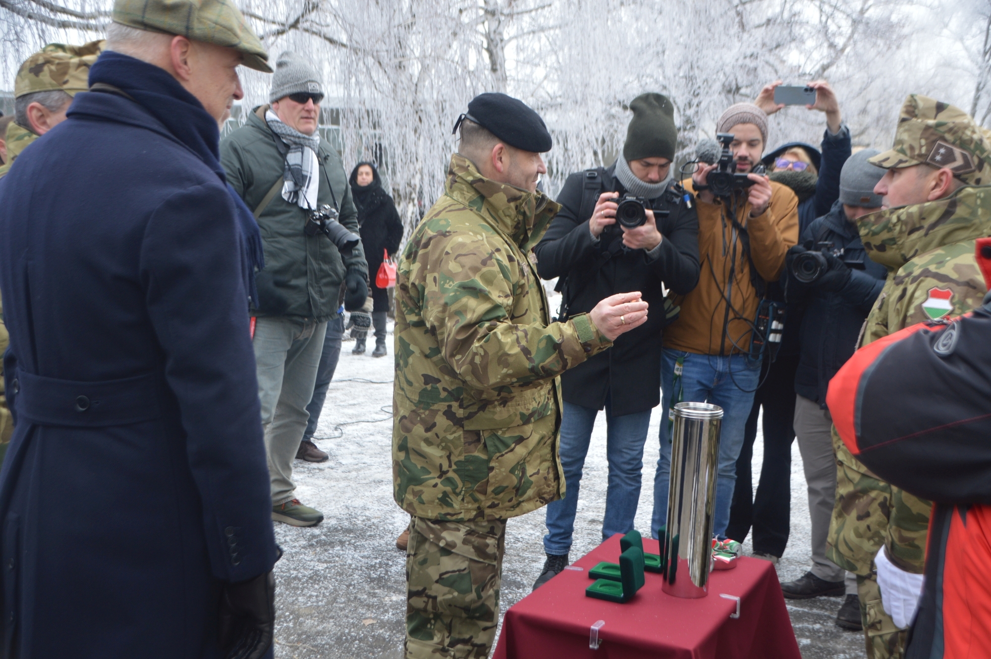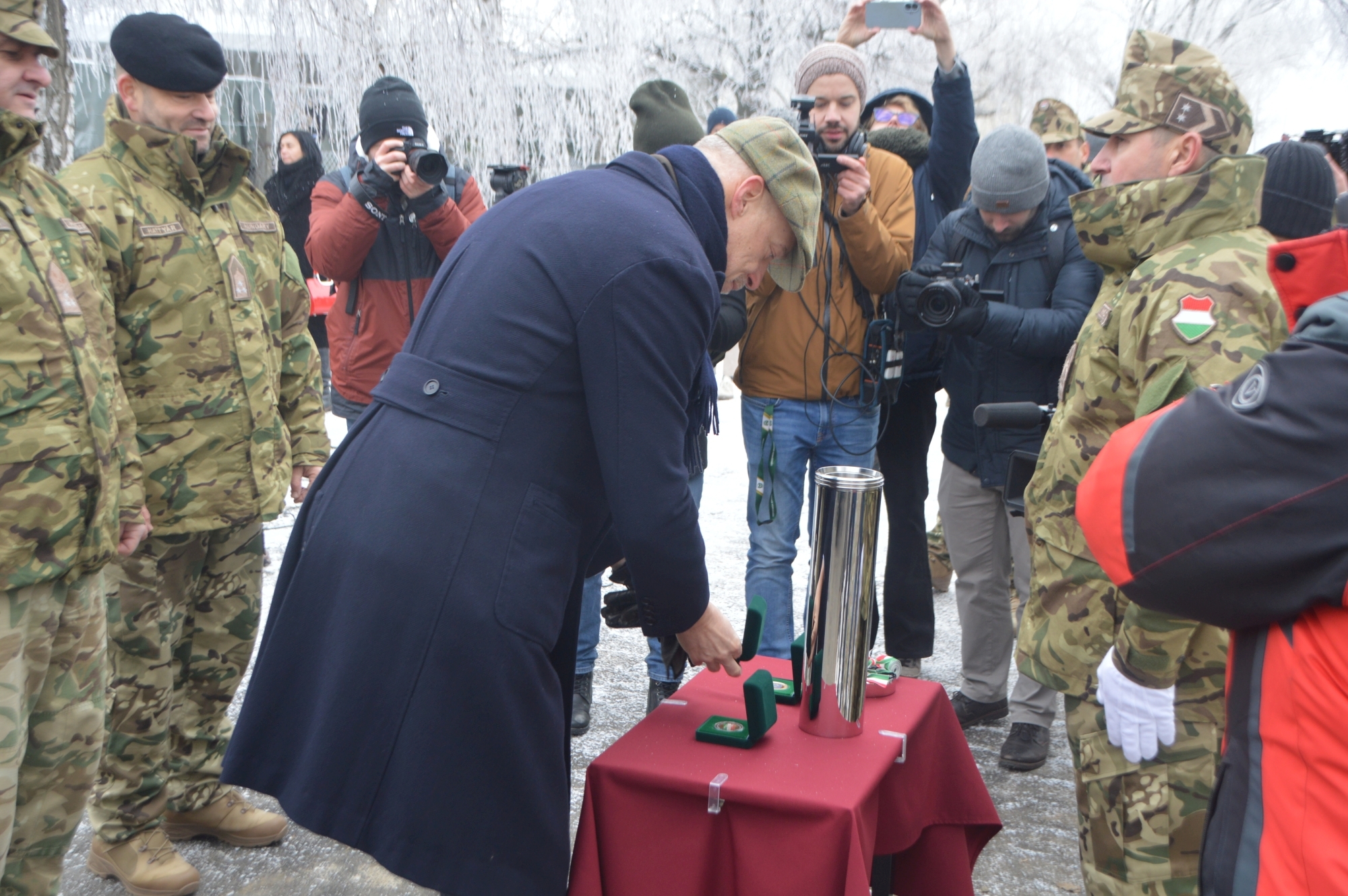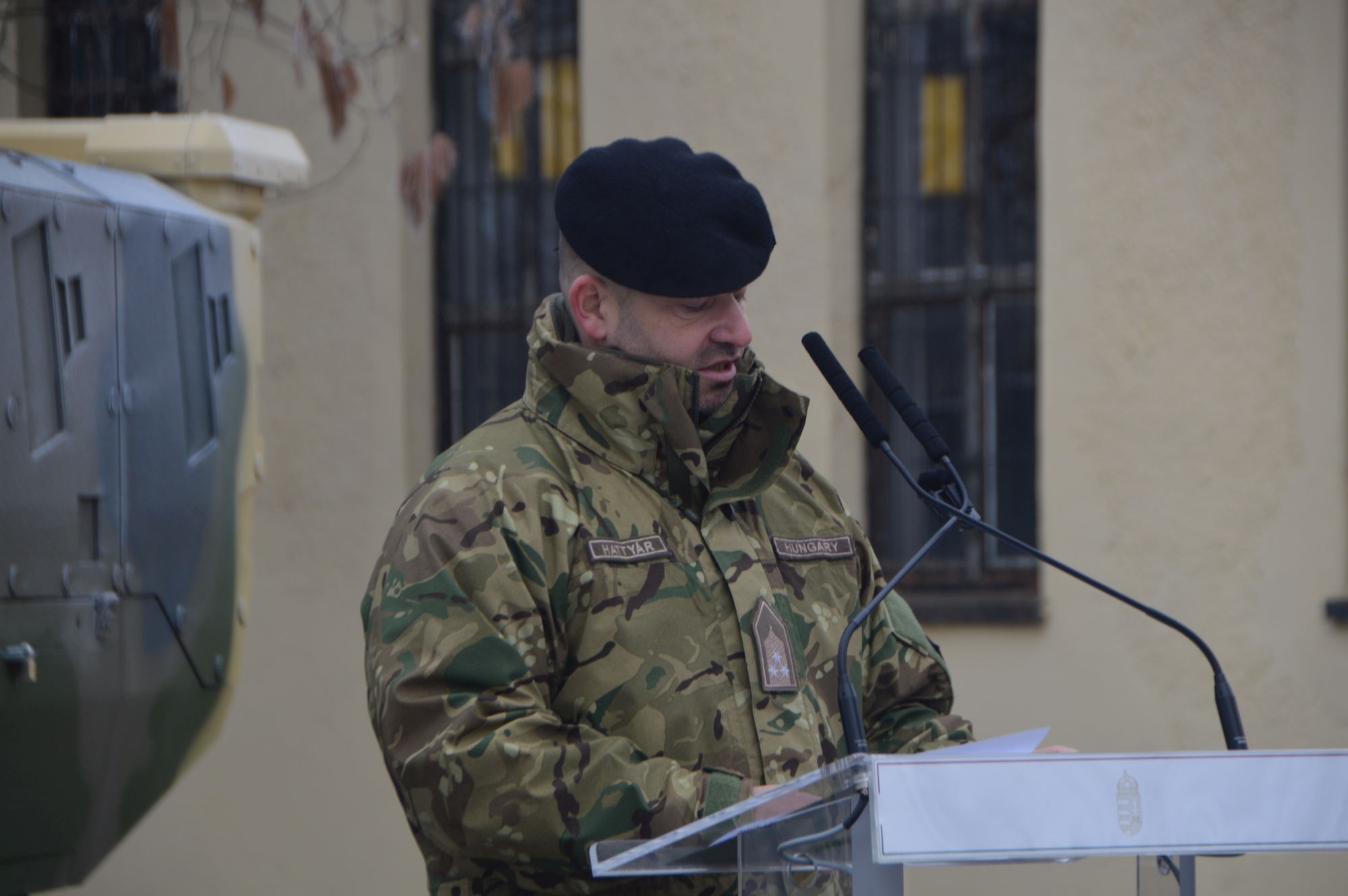 A keddi ünnepség stílszerűen az egyik első, Magyarországon gyártott és az egyik első Vásárhelyre szállított Lynx KF 41-es harcjármű előterében zajlott.