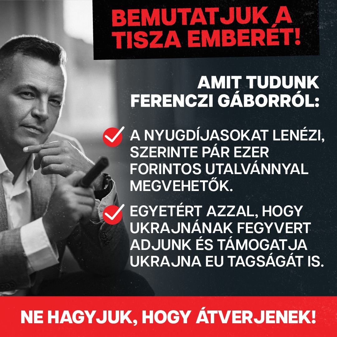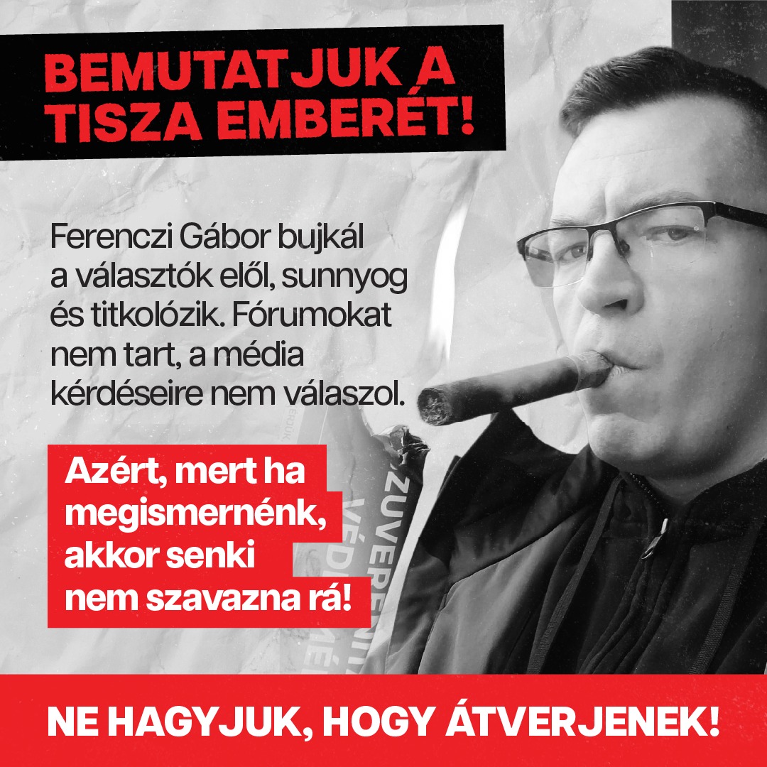 Szórólapsorozatot jelentett meg a Fidesz a hódmezővásárhelyi-makói választókerületben induló tiszás országgyűlési képviselőjelöltről. A kormánypárt ezt azzal indokolta, hogy szerintük Ferenczi Gábor bujkál a választók elől, sunnyog és titkolózik. Fórumokat nem tart, ráadásul a média kérdéseire sem válaszol. „Azért, mert ha megismernénk, akkor senki nem szavazna rá” – fogalmaz ezzel kapcsolatban a Fidesz.